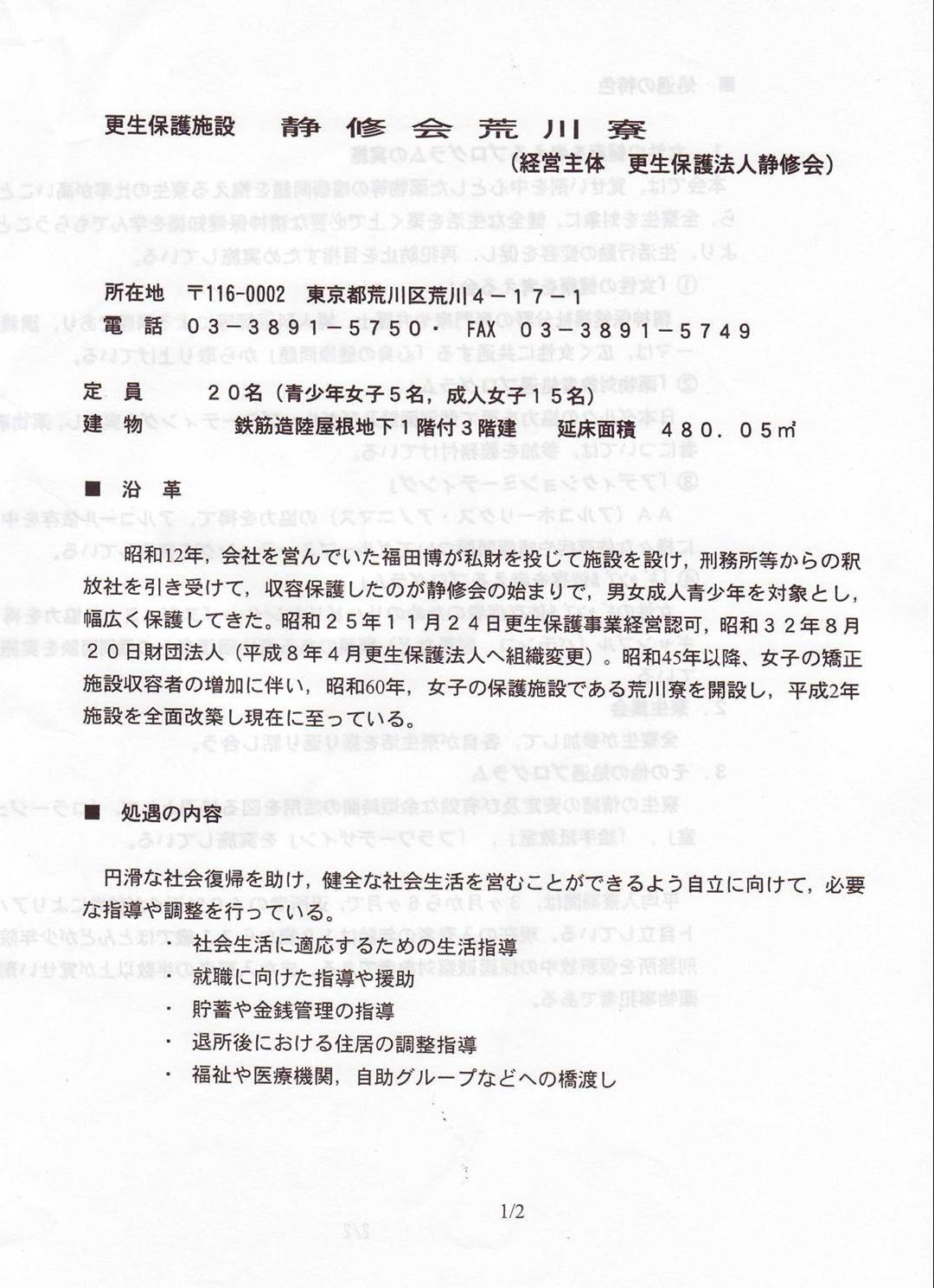 施設名 更生保護法人静修会・荒川寮
