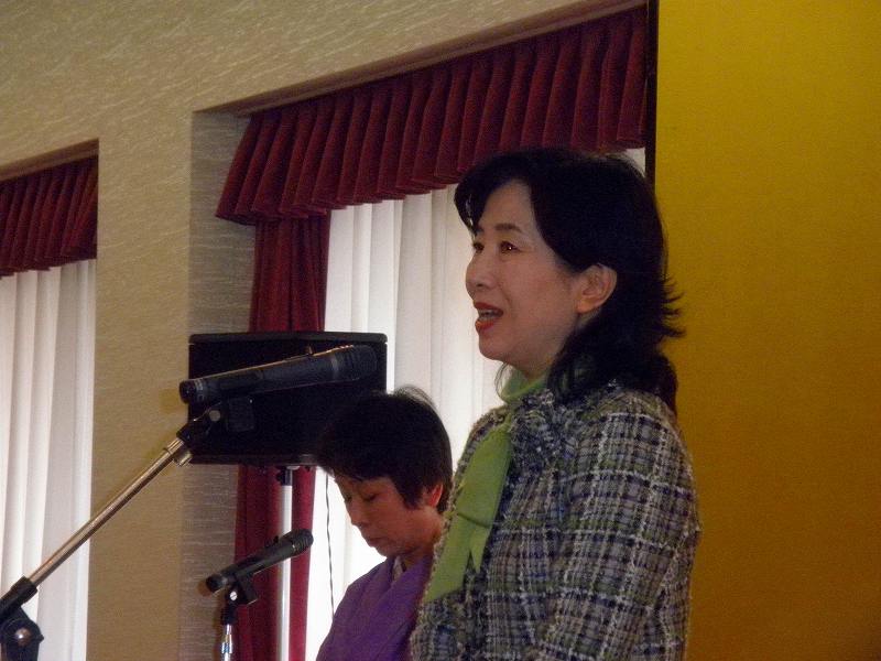 | 50周年を迎えて 坂本 悠紀子会長 新宿区更生保護女性会は、皆様のご協力を得て50周年を迎えました。 2年にわたり、スリランカの孤児院に図書館をつくる活動では2000冊に 及ぶ絵本を贈りました。 会員相互の協力で50周年記念誌も発行し、先達の歩みを皆様と分かち 合えた幸せをかみしめております。 更生保護会での給食奉仕、つくろいもの等、多くの会員の気持ちを込め た活動は今後も継続いたします。 「ファームきくち」では、少年院を出た子ども達の自立支援としてお米の 販売を応援してまいります。 今後とも、様々な活動を通して温かいご支 援を賜りますよう、よろしくお願いいたします。 懇親会には、東京保護観察所所長代理観察官、新宿区区長をはじめ、 多くのご来賓をお迎えし、新たな年の新宿更女を祝しました。 楽しい会食のあとはビンゴでおおいに盛り上がり、各テーブルごとに歌う 歌で、会場は華やかに彩られました。 |