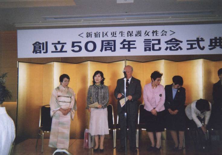 | 式典、および祝賀会には120名を超えるご参加を頂きました。 沢山の方に見守られ、育まれて今日があることを痛感します。 これまでのご支援に心から厚くお礼申し上げます。 昭和35年に新宿区更生保護婦人会が創立され、平成15年に 名称を女性会に変えて今年で50周年を迎えました。 全国で19万人の会員を数え、女性会綱領のもと、多くの会員が 様々な活動を展開しております。 新宿区更生保護女性会は50周年行事として、スリランカにある 養護施設「ガールズホーム」に読み終えた絵本を贈る活動をして まいりました。 多くの会員が地域を超えたつながりを持ち、関係諸団体と緊密 な連携、協働を重ねることで大きな成果が得られました。 皆様のご協力、温かいご支援のおかげさまと、感謝しております。 本日、皆様には会の足跡をご報告し、今後は気持ちも新たに様 々な活動に取り組んでまいります。 ご指導、ご協力を賜りますよう、よろしくお願い申し上げます。 |