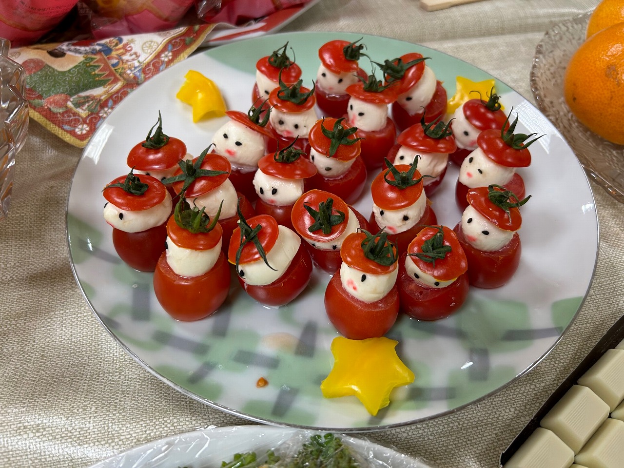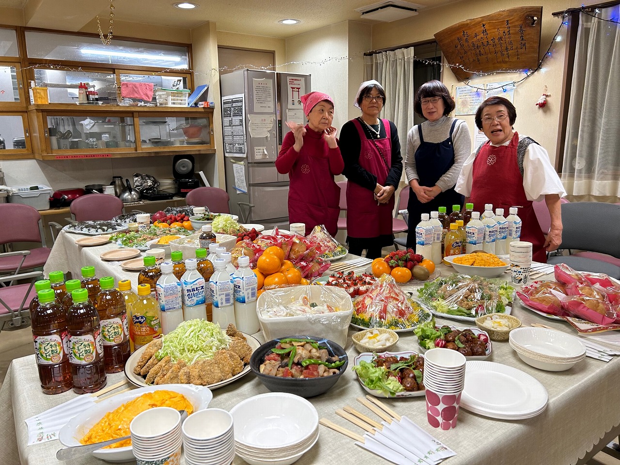 | 更新会・クリスマス会 令和5年12月17日(日) 北風舞う師走に寒さが一段と厳しくなるころ、更新会に於いてクリスマス会が実 施されました。 寮生も仕事に、そして求職活動に慌ただしい時期でもあり、クリスマスデコレーシ ョンに彩られた温もりのロビーでは、沢山のお料理に囲まれてホッとする年末のひ と時です。 クリスマスの音楽と寒空と、それでもうきうきする町の風情は童心に戻ります。 今年もプレゼントがもらえるのでしょう、心温まる期待感に身を任せ、パーティーは ビュッフェスタイルのメニューにミニトマトのサンタクロースを見つけて大盛り上がりで した。 これはミニトマトを横半分に切り、間にモッツアレラ・チーズをはさみます。 トマトのヘタは、まさに帽子! 赤いお洋服にサンタのお顔で、目は黒ゴマ・お口を 描いて出来上がりです。笑うサンタ、探し物をするサンタ等、それぞれのサンタの表 情は生き生きと動き出します。 寮生の会話では、これは食べてよいものか?デザートなのか? これほど嬉しい独り言はありません、クリスマスの夕べのロビーは本当に温かいお 伝いの方々のお気持ちが寮生の心に沁みました。 ![]() 私たちが心をこめてミニトマトに細工をし、サンタの顔を作って夢の一皿になりまし たが、寮生たちがスマホで撮影を始め、いつまでもサンタに見入る笑顔で楽しさ一杯 の集いとなりました。 寮生、1人1人の感想では、退所後も来年のクリスマス会には必ず参加をします、 今日のようなお料理を食べに来ます、との楽しい発言で満場が沸いた良い想い出で す。 プレゼントは、フルジップのジャケットで、これから外出時のなくてはならない必需品 です。櫻井会長から手渡され、代表で受け取った寮生は丁寧にも文書に書き留めた お礼文を実に立派に読み上げました。 ![]() 本活動は千代田区・中央区・港区 各地区からの会長はじめ皆様の大きなご協力 により実現いたしました。 長時間にわたり、沢山のお料理はじめ準備にどれ程のお力添えを頂いたか分かり ません、皆様の心からのご支援と有難いご理解に心からの感謝を申し上げます。 お陰様で素晴しいクリスマスとなりました。 |