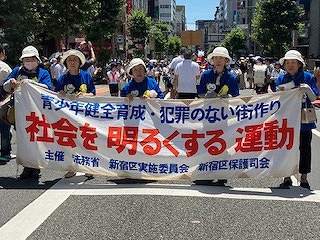 | 第73回 社会を明るくする運動 パレード 令和5年7月2日(日) 於:新宿大通り 年間の強調月間として毎夏全国的に展開される社会を明るくする 運動・パレードは、新宿区・新宿区保護司会・新宿区更生保護女性会 ・BBS会、民生委員会、育成会、金管バンド演奏諸学校、更生保護団 体他、30団体を超える皆様のご参加で大きな成果を上げました。 赤字で大きく染め抜かれた「社会を明るくする運動」の先頭横断幕は 、例年新宿区更生保護女性会が誇らしく掲げて大きな一歩を踏み出し ます。 ![]() ![]() ![]() 各地域でそれぞれの団体が、存在感を示しながら社会の安全安心に 気持ちを傾け、幾多の貢献をしております。 今後は多くの方々を巻き込み、より広範な規模での連携と協働が何 より待たれます。 ![]() 私共の行進は、沿道でご覧になる方々へも強い印象となりました。 例年、出来ることを積み上げる私たちのたゆまぬ努力を、今後も充実 させ新たな取組として継続して参ります。 皆様には、更生保護活動にますますのご理解とご協力をお願い申し 上げます。 |