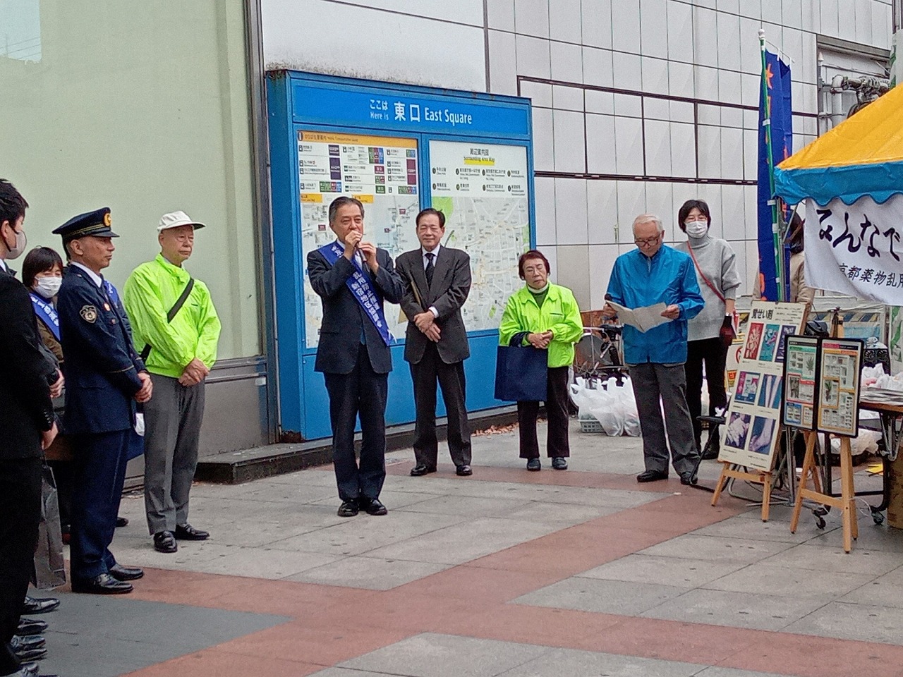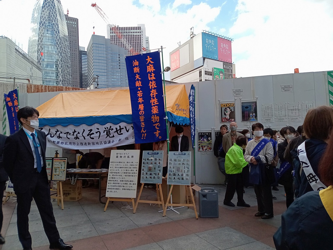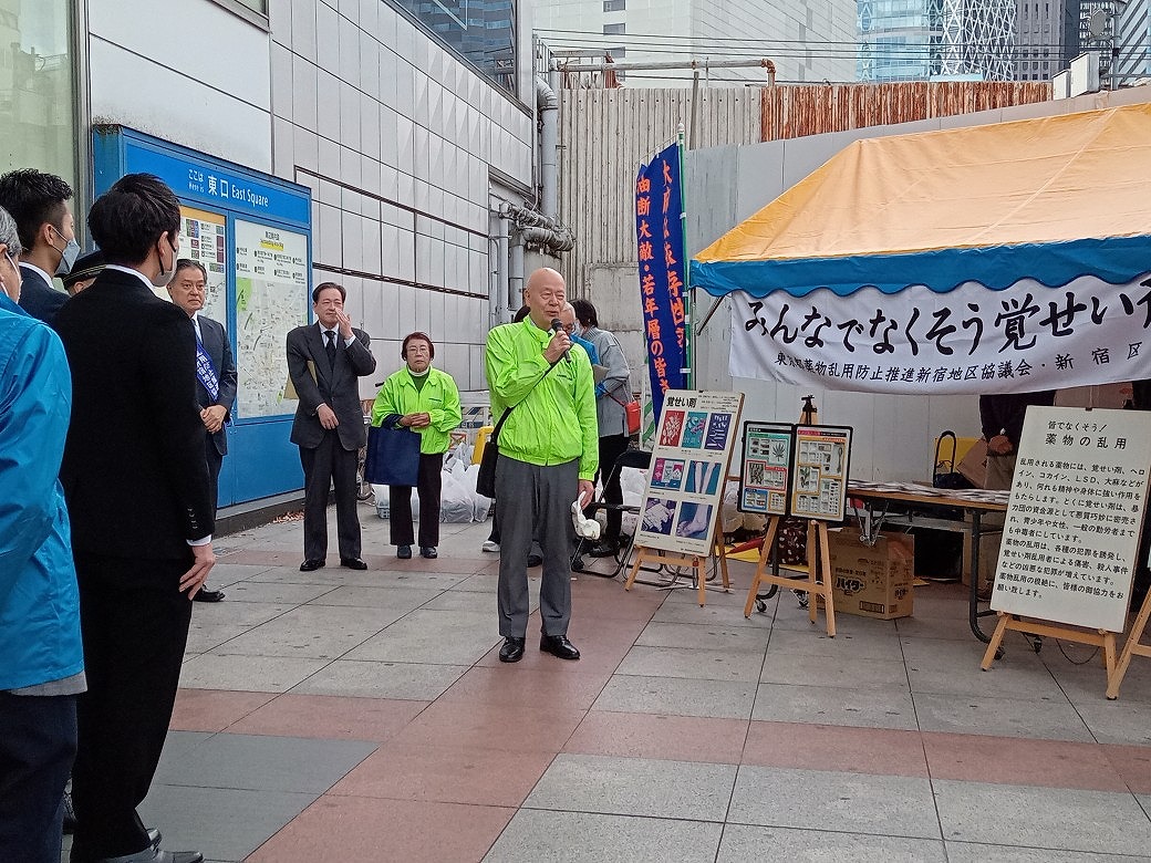 | 薬物乱用防止活動 令和5年11月18日(日) 於:新宿駅東口・駅頭 寒さを感じるこの頃、新宿駅東口において恒例の薬物乱用防止活動が各団 体名入りのタスキ等のPRを通して実施されました。 ![]() 新宿区、薬物乱用防止協会、ライオンズクラブ、薬剤師会、新宿区更生保護 女性会、新宿区保護司会、新宿駅、新宿警察、母の会、民生委員会、等、多 様な活動を実施される団体により、大きな広報の実現でした。 ![]() 新宿区長の区民への大きな呼びかけは区の意気込みとして、今後の認識に大 きな影響となることでしょう。 ![]() 駅利用の沢山の皆様にはマイクを通して薬物の怖さの説明がされ、ポスター 等の利用で分かりやすい工夫も随所に目立ちました。 また、薬物乱用の実態を伝えるパンフも配られ、駅周辺を歩かれる皆様には 確実な認識に繋がったと思います。 再犯防止、社会を明るくするために我々は何をすべきか、活動の企画と実施 を通じてますます実効的な取組が待たれるところです。 今後とも、皆様のご理解とご支援をお願い申し上げます。 |