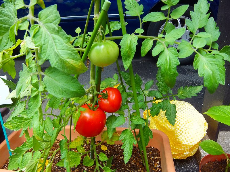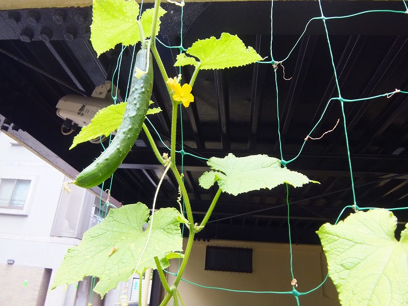 | 6月24日 夏を間近にするこの頃、新緑の緑もその濃さを増し、花々 の彩も鮮やかになりました。 本日は実をつけたミニトマトときゅうりをご紹介いたします。 都会の真ん中、新宿で育った野菜の赤ちゃんに、命のたく ましさを痛感します。 この様に育まれた野菜たちは、サラダ、きゅうりもみ、酢の 物、など、毎日の食卓で皆の眼を楽しませ、爽やかな味わい になります。 |