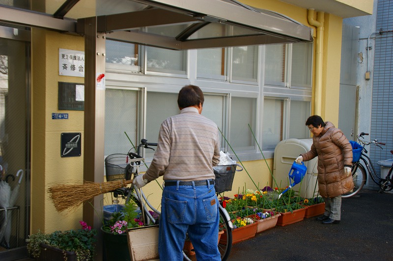 | 3月 斉修会で始まったガーデニングも、多くの皆様のご協力で 色とりどりのおプランターが出来上がってまいりました。 春に植える花々、そして、吉川副会長から寄付を頂いた「 内藤とうがらし」も堂々と仲間入りしています。 今後も、斉修会のガーデニングをお楽しみください。 |